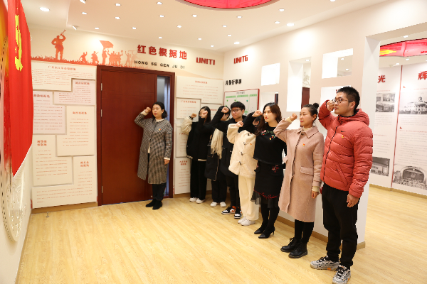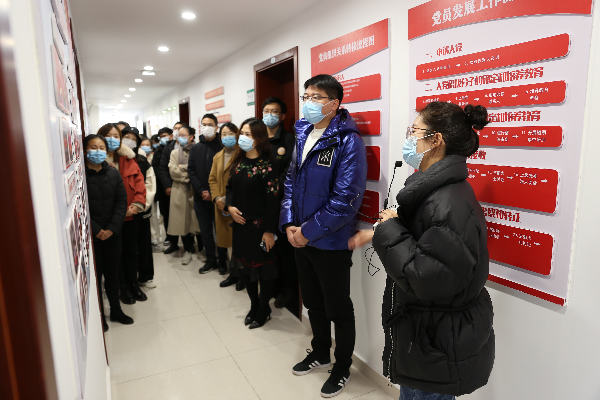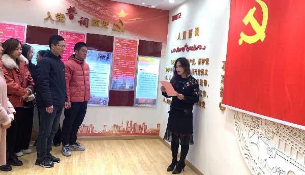 仪式开始前,区教育党建服务中心讲解员方雯同志带领新党员参观教育党建服务中心。通过对党建中心功能定位、工作职责、工作内容等项目的介绍,让新党员对于党的建设工作有了一定了解。